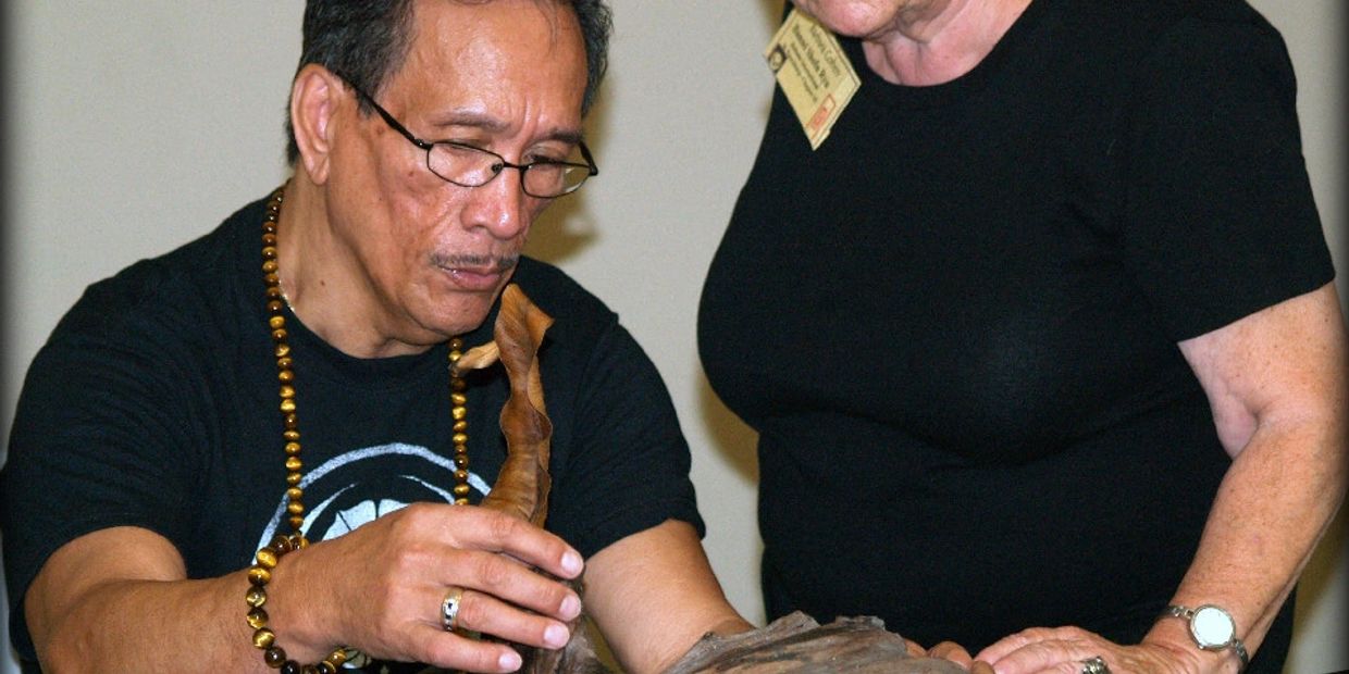 To learn ikebana well, persistence and consistency are important in learning ways of putting materials together to replicate nature inside or outside the home. The learning session typically starts with the sensei showing how to use certain materials during a live demonstration while the deshi/s watch/es. Then the deshi replicates the process as best as possible. Critique by the sensei immediately afterwards is critical to learning, and the deshi listens and observes any corrections taking note of how a design may look totally different sometimes with just a minor change of the flower angle or its placement in the container. In the image above, Ric Bansho -sensei shows how the distinct placement of a driftwood can alter the feeling exuded by the design.